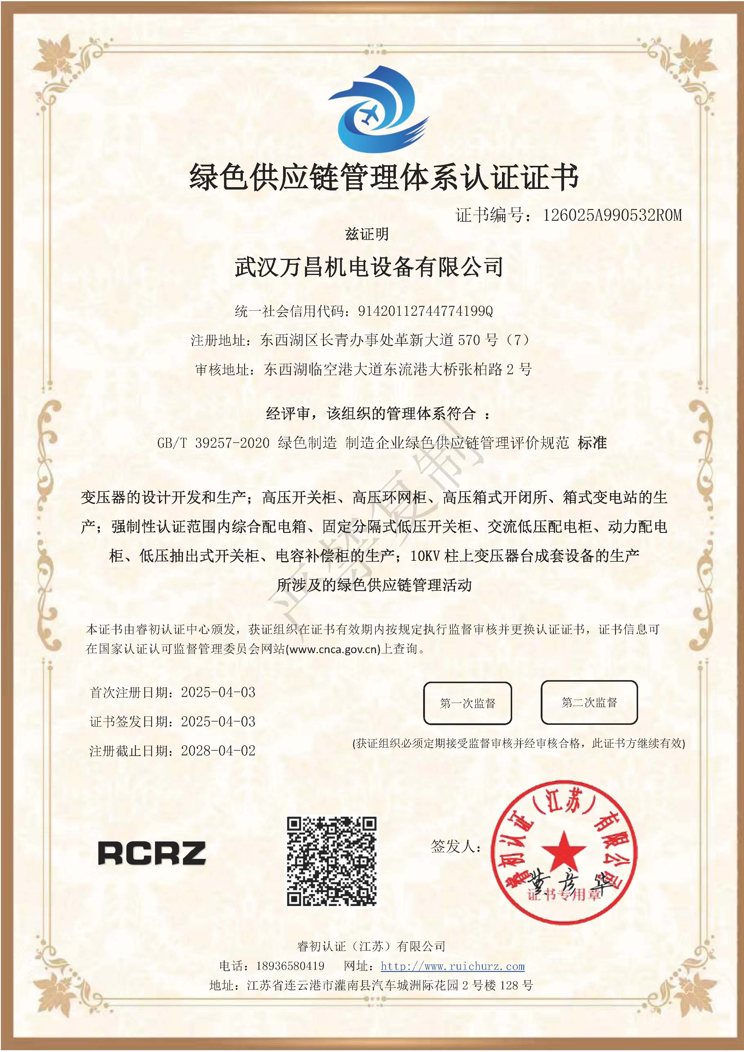 綠色供應(yīng)鏈管理體系認證證書